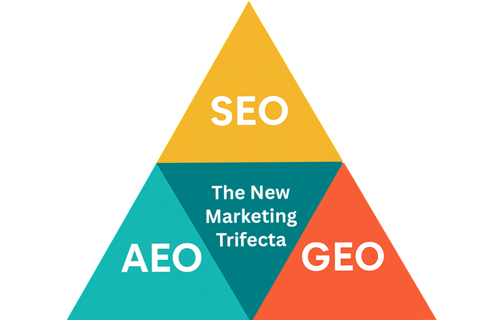What is the marketing trifecta of SEO, AEO, and GEO?